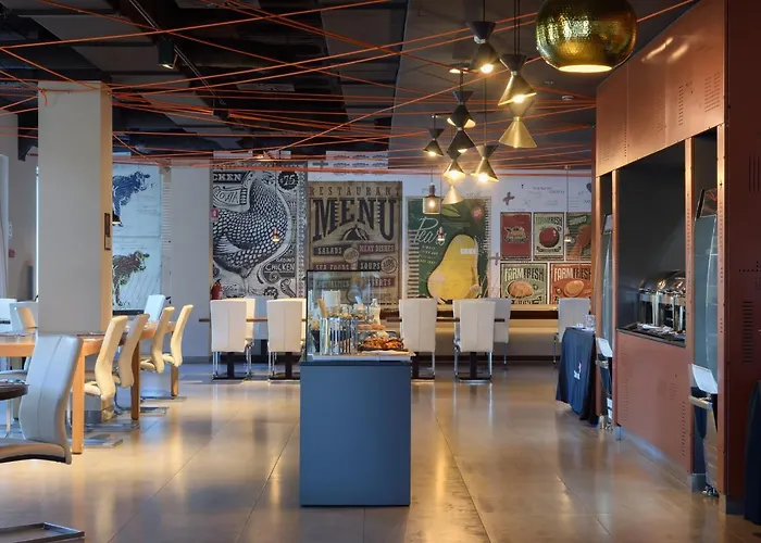 Le restaurant de pizza Stars Caffe est un grand élément de l'hotel contemporain.
